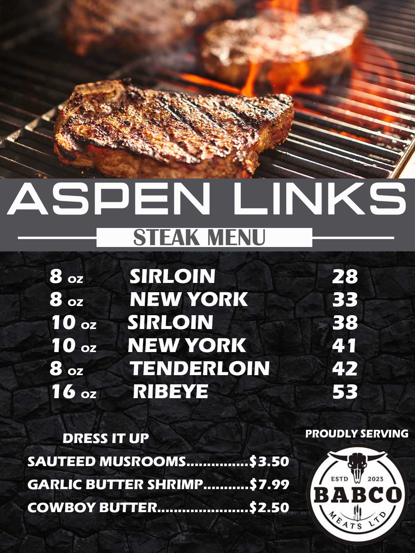 Aspen Links Clubhouse and Rec Room offers up a very extensive menu with everything from breakfast to an amazing fine dining experience. We can custom cater options to suit your groups interests and will come up with the perfect balance for your event. Join us today for your next outing or call 306-791-7467 to order take out.